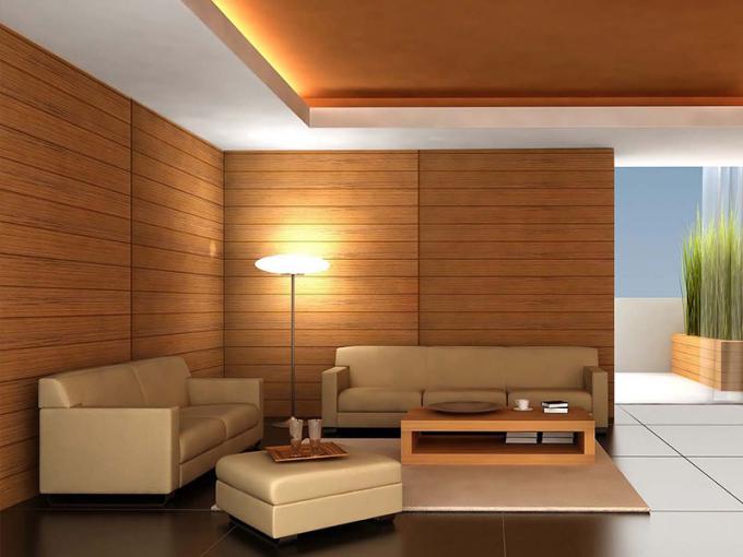 Các phòng khách trong bức ảnh được trang trí với các tấm gỗ pvc thiết kế nhiều lớp, nó trông giống như gỗ thật, nhưng chi phí là rẻ hơn nhiều và dễ dàng hơn để cài đặt hơn gỗ. nó cũng dễ dàng để làm sạch.